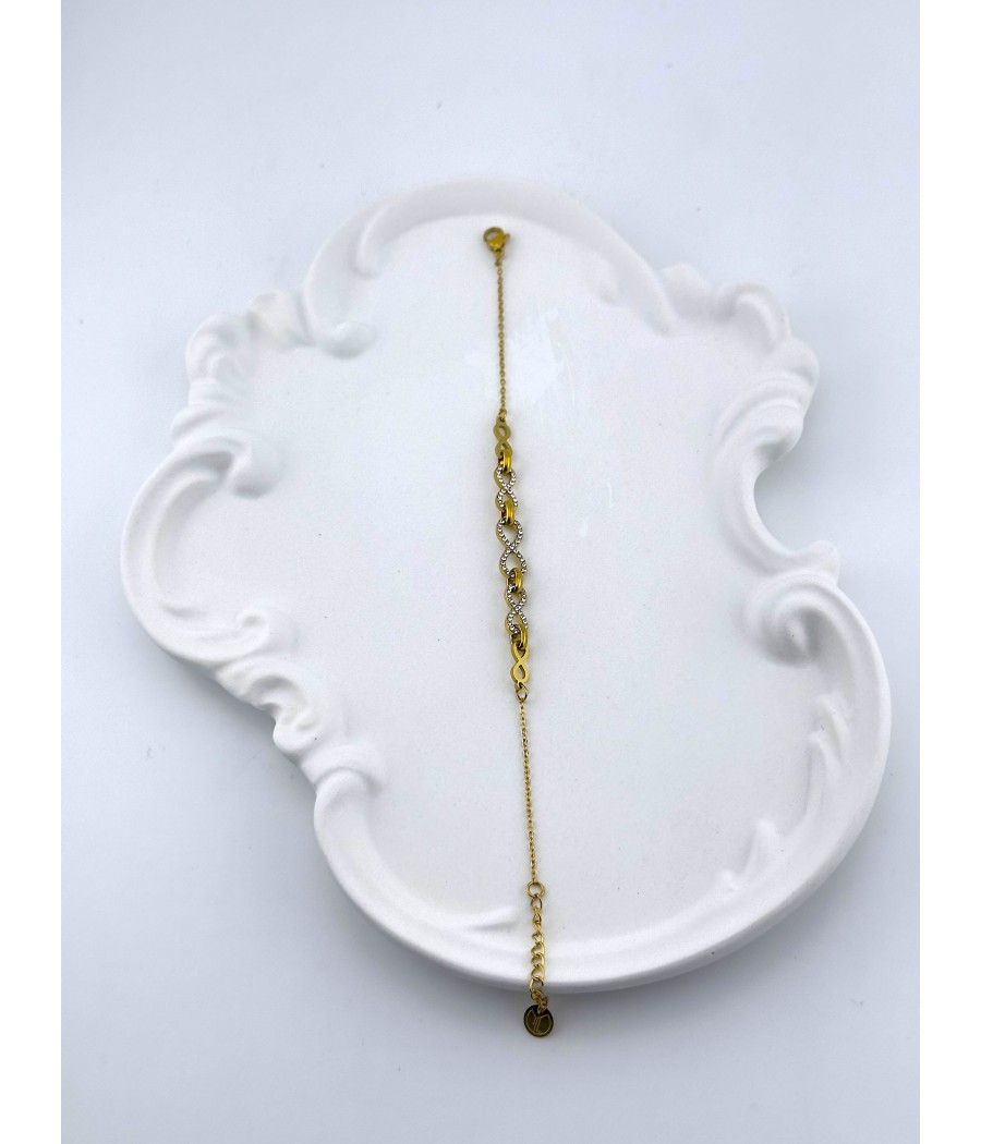 Βραχιόλι άπειρο με ζιργκόν σε ατσάλι ή χρυσό. Ιδανικό για διακριτική λάμψη και συμβολισμό αιώνιας αγάπης.