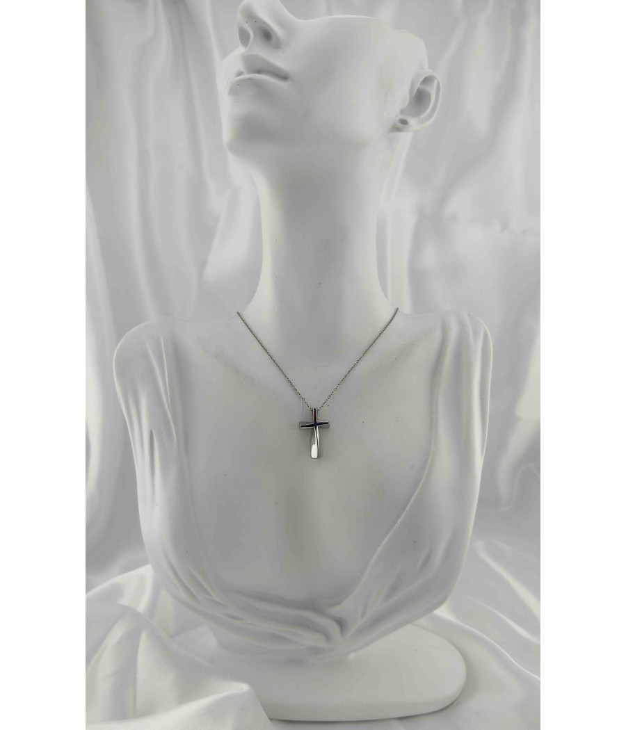 Κομψό κολιέ σταυρός με διακριτική λάμψη, διαθέσιμο σε χρυσή και ασημί απόχρωση. Διαχρονική επιλογή με εκλεπτυσμένο χαρακτήρα.