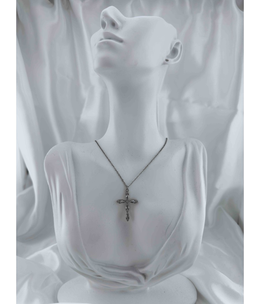Κολιέ σταυρός σε χρυσή και ασημί απόχρωση με διακριτικές πέτρες και εκλεπτυσμένο σχεδιασμό. Μια διαχρονική επιλογή με κομψό χαρακτήρα.
