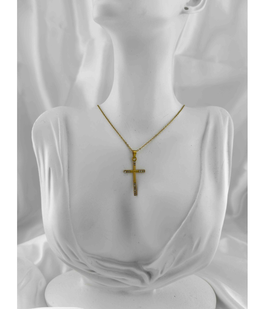 Κολιέ σταυρός με κομψές πέτρες και εκλεπτυσμένη αισθητική. Διατίθεται σε χρυσή και ασημί απόχρωση για εμφανίσεις με κύρος.