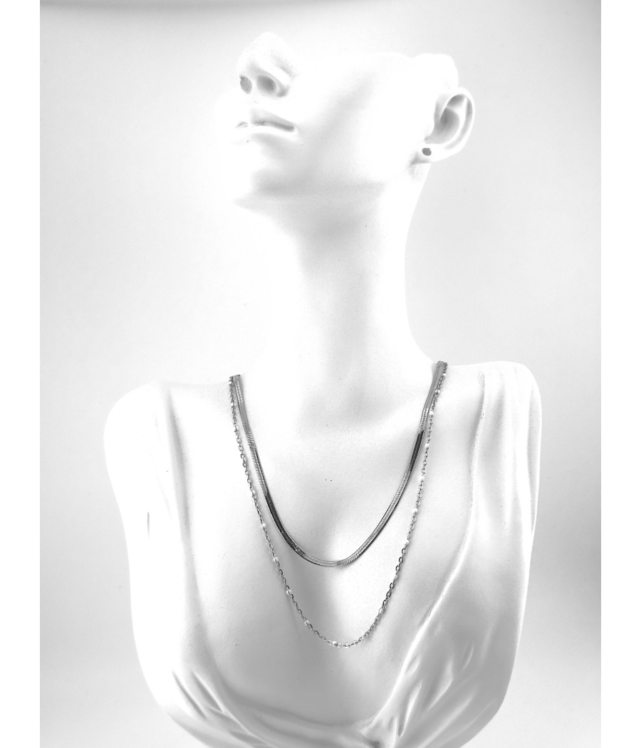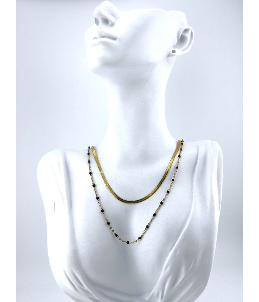 Μοντέρνο διπλό κολιέ από ατσάλι με αλυσίδα snake και διακριτικές χάντρες