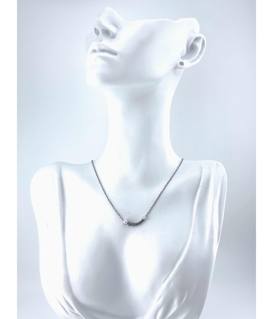 Διαχρονικό κολιέ με μαργαριτάρια και ζιργκόν, διαθέσιμο σε ασημί και χρυσό για κάθε περίσταση.