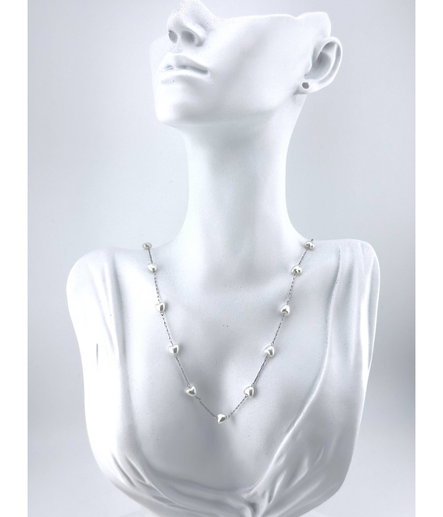 Κολιέ με μαργαριταρένιες καρδούλες σε ασημί ή χρυσό ατσάλι – κομψό και ρομαντικό σχέδιο. 💕
