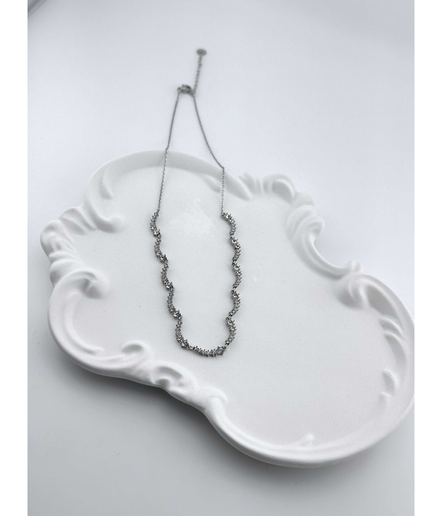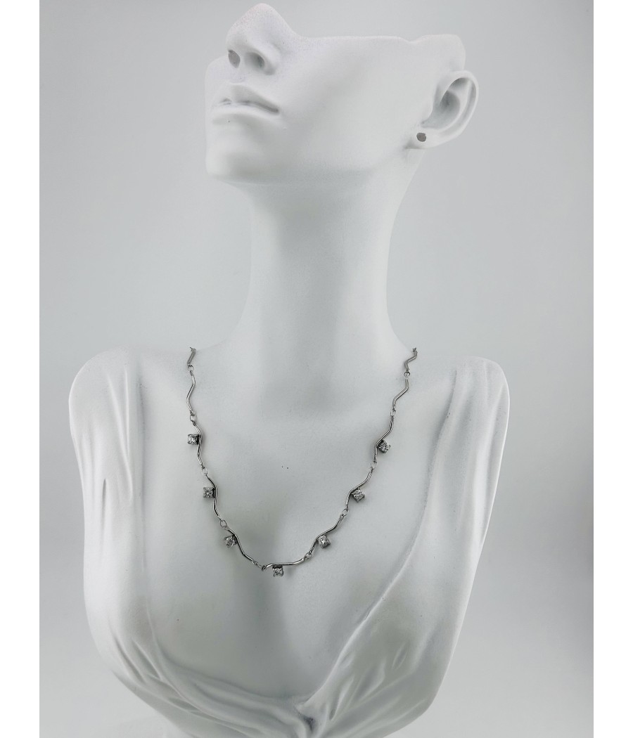 Μοντέρνο και εντυπωσιακό κολιέ με κυματιστή γραμμή και ζιργκόν, σε ασημί και χρυσό χρώμα