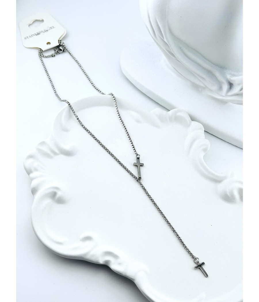 Μοντέρνο ατσάλινο κολιέ με δύο σταυρούς σε minimal σχεδίαση. Διατίθεται σε ασημί και χρυσό χρώμα, ιδανικό για κάθε εμφάνιση, ανθεκτικό και διαχρονικό.